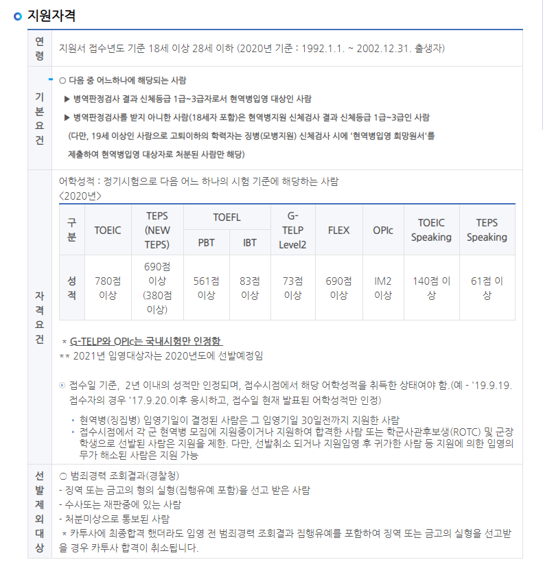 | 2021 카투사 지원하기 / 상황별 알맞은, 유리한 시기 (꿀팁 포함) (0) | 2020.06.16 |